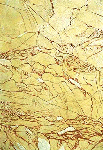 Der gelbe Fleuri ähnelt mit seiner netzartigen Aderung den Bardigliomarmoren, wie dem blauen Fleuri.