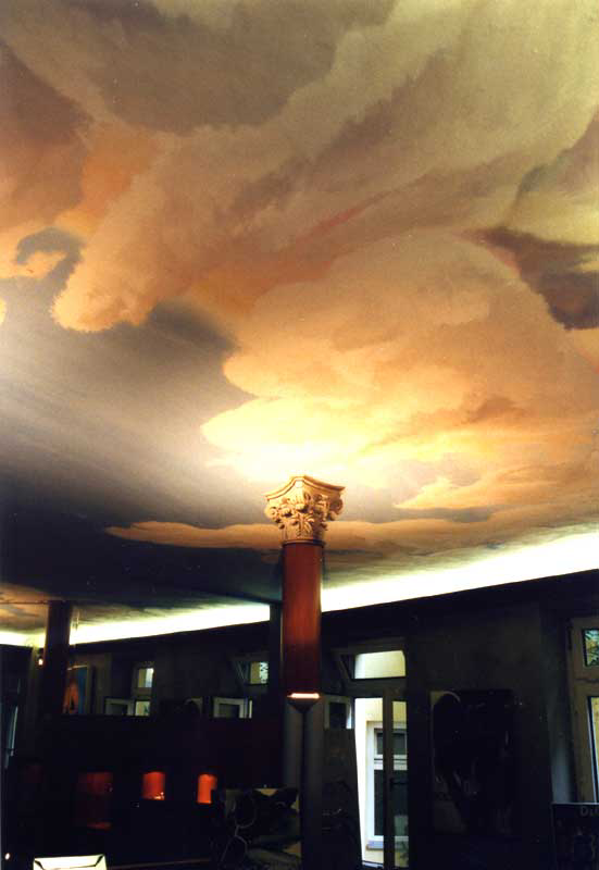 Der Abendhimmel und die Säule im künstlichen Licht.